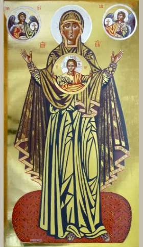 Die Ikone ist eine wundervolle Darstellung der Gottesmutter aus der Kategorie der Orans-Darstellungen. Die Bezeichnung ”Orans” (lateinisch: orante) bedeutet beten. Dabei werden die Arme erhoben und die Oberarme verbleiben dicht am Körper. Die geöffneten Handflächen weisen dabei seitwärts nach oben. Orans-Abbildungen gibt es schon aus frühchristlicher Zeit (Katakomben).